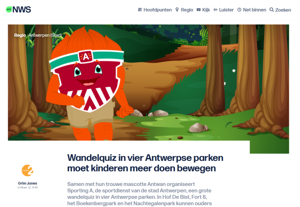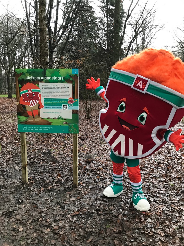 Along the way, there are twelve signs with a (sports) quiz question on each. The answers to these questions yield letters that form an ‘inspiring message’ at the end of the walk. The app allows you to give the walk quiz an extra dimension by answering the quiz questions immediately during the walk. Those who succeed in all assignments will be rewarded with an AR-selfie with Antwan, the friendly Sporting A mascot.