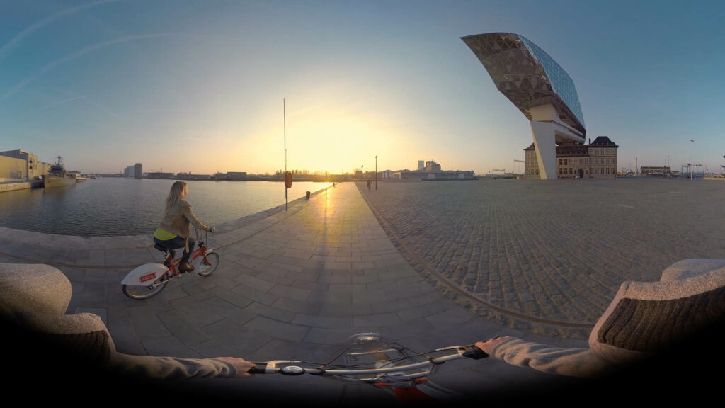By moving your head, you can see the whole area and at the VR booth, you’re actually sitting on a typical, red Antwerp bike. That brings the whole experience to life.